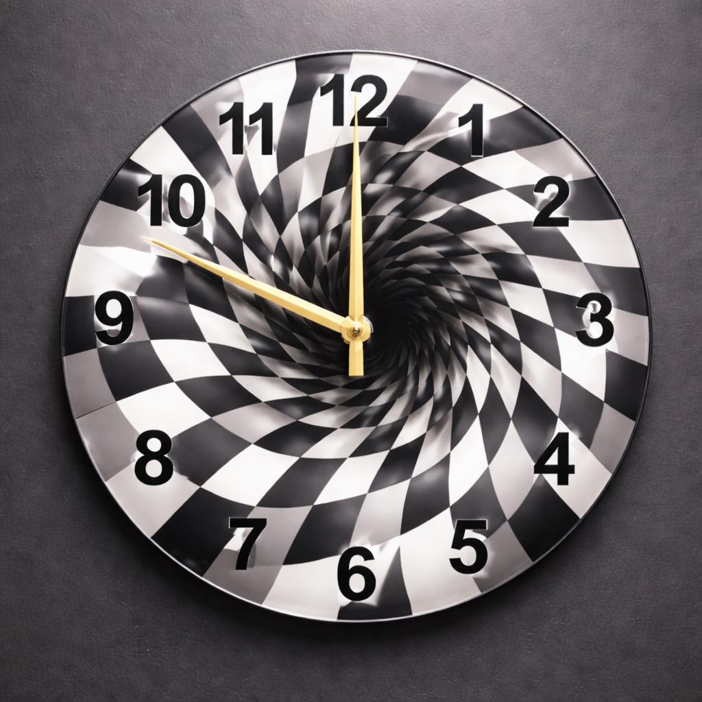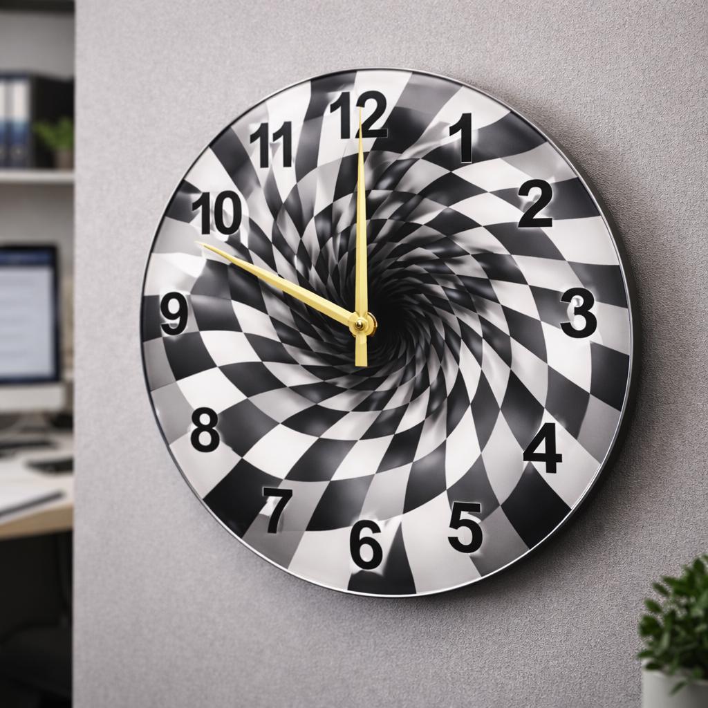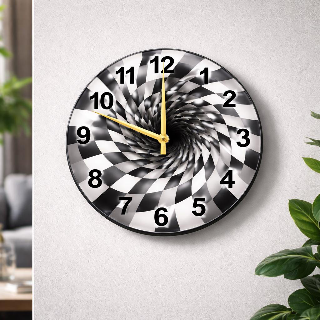 Add a bold and modern visual effect to your space with this Optical Spiral Glass Wall Clock. Featuring a dramatic black and white vortex pattern, this design creates a striking sense of depth and motion that instantly captures attention. The high-contrast geometric layout gives the clock a contemporary artistic look, making it a standout accent for modern interiors.