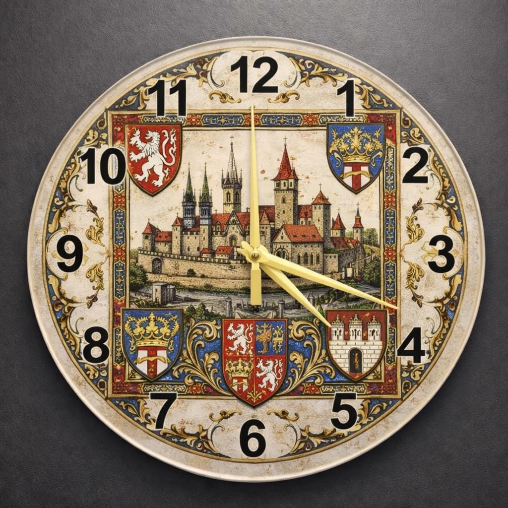 Made with careful attention to detail, this clock features a smooth glass surface and vivid direct-to-surface printing that highlights the fine patterns, architectural details, and rich decorative elements of the artwork. The medieval-inspired design gives it a distinguished and artistic presence, turning it into more than just a practical timepiece and making it a beautiful focal point for your wall.